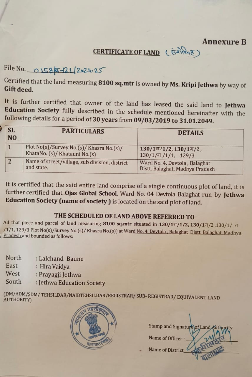 OJAS GLOBAL School, as the name we aspire to present a Global outlook to our children with the roots being firmly entrenched within the value system of our culture. The school will embrace all modern means and techniques for imparting the right education to the children.